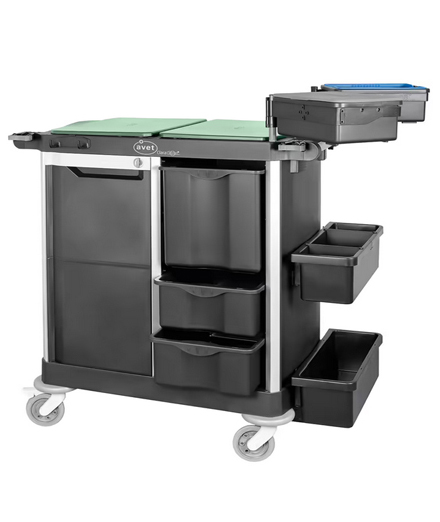 Discover the ClaraClean Trolley – our solution for efficient cleaning organization. This modular cleaning trolley offers tailor-made options for every need. The cart allows for organized storage and quick access to cleaning supplies. With a modern design, environmentally friendly production made from 90% recycled PET and its compatibility with various cleaning systems, the ClaraClean trolley is the ideal choice for effective and sustainable cleaning processes.